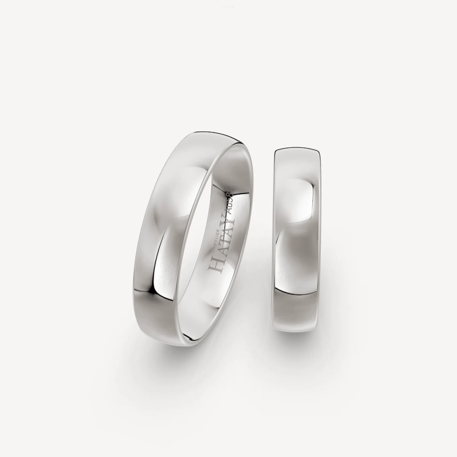 Goldring Paar in 585er Weißgold, mit einer Ringbreite von 5,00mm und einer Ringhöhe von 1,2mm in verschiedenen Ringgrößen erhältlich.